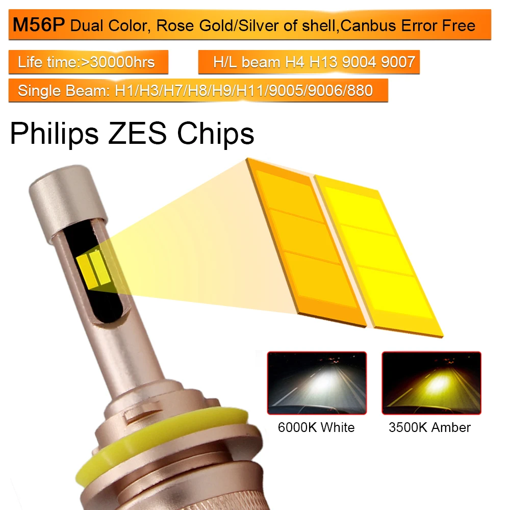 Finest MODERN CAR Dual Color White Amber Fog Lights 72W 8000LM LED Fog Lamp Bulb H11 H7 H4 9005 9006 880 L